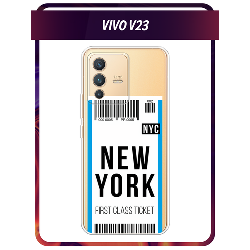 Чехол на Vivo V23 / Виво V23 с принтом Билет в Нью-Йорк, прозрачный