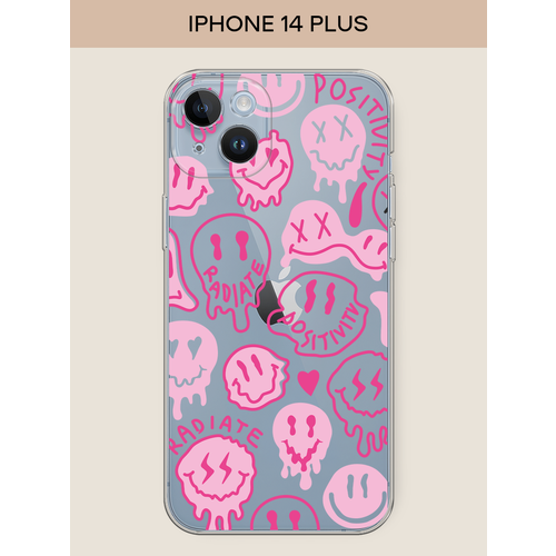 Чехол на Apple iPhone 14 Plus / Айфон 14 Плюс с принтом Галлюциногенные смайлики, прозрачный