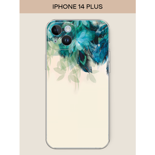 Чехол на Apple iPhone 14 Plus / Айфон 14 Плюс с принтом Перья голубого цвета