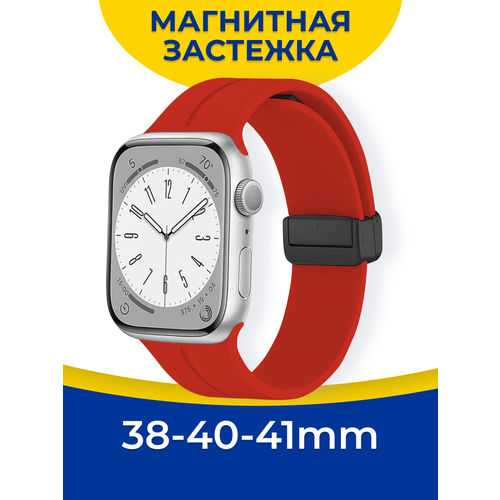 Силиконовый ремешок для Apple Watch 1-8, SE 38, 40, 41 мм с магнитной застежкой / Браслет на смарт часы Эпл Вотч 1, 2, 3, 4, 5, 6, 7, 8 и СЕ / Красный