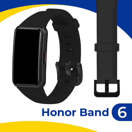 Силиконовый ремешок с застежкой для фитнес-браслета Honor Band 6 и Huawei Band 6 / Браслет на смарт часы Хонор Бэнд 6 и Хуавей Бэнд 6 / Черный