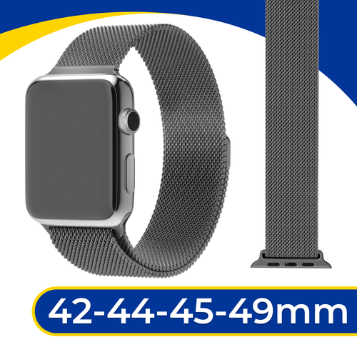 Металлический ремешок на Apple Watch 1-8, SE 42-44-45-49 mm / Браслет миланская петля для смарт часов Эпл Вотч 1, 2, 3, 4, 5, 6, 7, 8, СЕ / Графит
