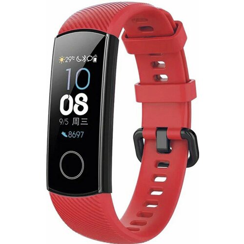 Силиконовый ремешок с застежкой для фитнес-браслета Honor Band 4 и 5 / Спортивный сменный браслет на смарт часы Хонор Бэнд 4 и 5 / Красный