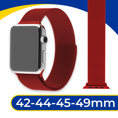 Металлический ремешок на Apple Watch 1-8, SE 42-44-45-49 mm / Браслет миланская петля для смарт часов Эпл Вотч 1, 2, 3, 4, 5, 6, 7, 8, СЕ / Красный