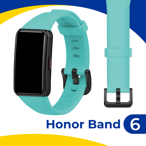 Силиконовый ремешок с застежкой для фитнес-браслета Honor Band 6, Huawei Band 6 / Браслет на смарт часы Хонор Бэнд 6 и Хуавей Бэнд 6 / Бирюзовый