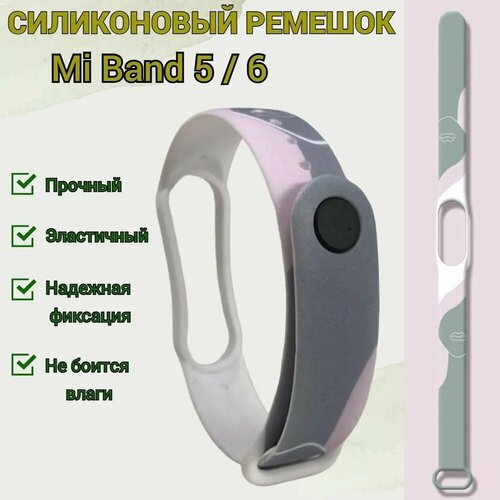 Ремешок силиконовый для Mi Band 5/6 , белый/серо-синий/светло-розовый