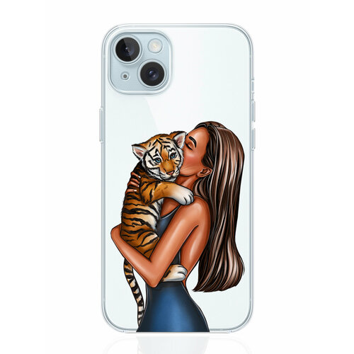 Чехол для смартфона iPhone 15 Plus прозрачный силиконовый Девушка с тигренком