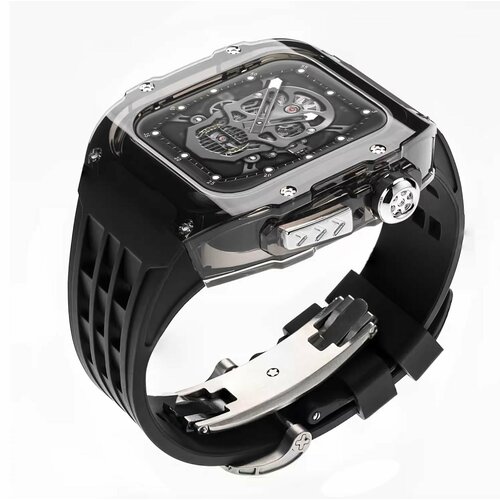 Премиальный ремешок для Apple Watch 44 / 45 mm в стиле Richard Mille Black/Silver BT