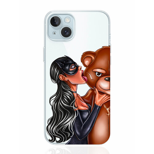Чехол для смартфона iPhone 15 Plus прозрачный силиконовый Кошечка брюнетка и мишка