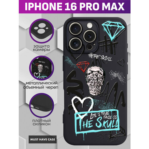 Чехол на iPhone 16 Pro Max Череп металлический с голубым принтом