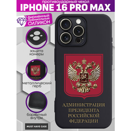 Чехол на iPhone 16 Pro Max Золотой металлический Герб Администрация президента РФ