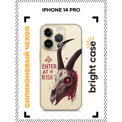 Чехол на Apple iPhone 14 Pro / Айфон 14 Про с принтом Кровавый череп с рогами, прозрачный