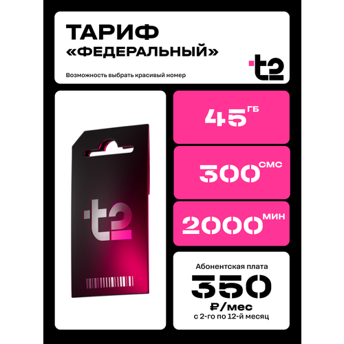 Sim-карта T2, безлимитный Интернет, 45 ГБ , без ограничений, для ЛЮБОГО УСТРОЙСТВА за 350 руб/мес