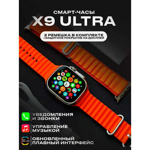 Смарт часы Х9 ULTRA / Умные часы 2023 AMOLED экран Smart Watch 45 mm, звонки по Bluetooth, 2 ремешка, оранжевые