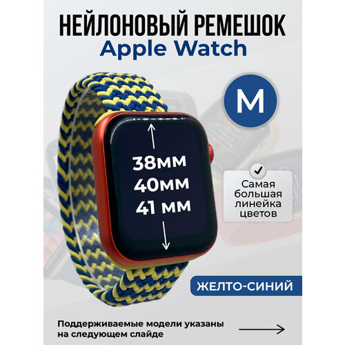 Нейлоновый ремешок для Apple Watch 1-9 / SE (38/40/41 мм), без застежки, желто-синий 2, размер M