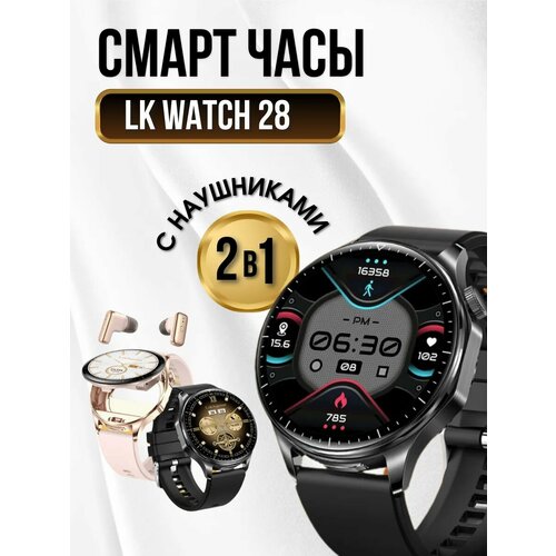 Смарт-часы с наушниками LK Watch 28, Откидной Amoled экран, Встроенные наушники 2в1, Черные