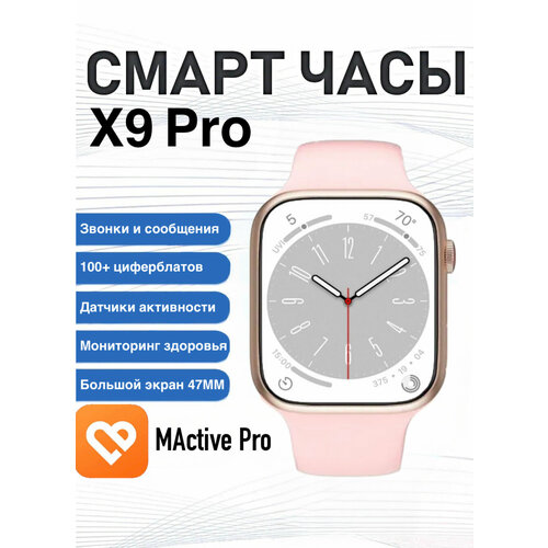 Умные часы X9 pro MActivePro Смарт часы Amoled iOS Android уведомления, звонки, розовые