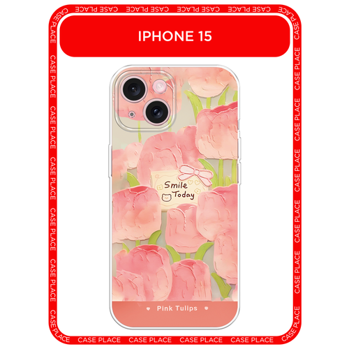 Чехол на Apple iPhone 15 / Айфон 15 с принтом Розовые тюльпаны