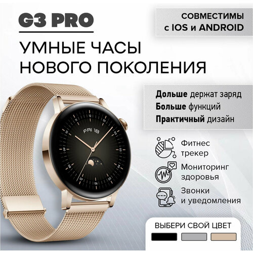Умные наручные круглые смарт часы G3 PRO для iOS Android, золотистые