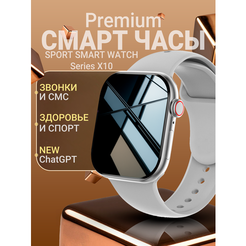 Умные часы WATCH X10, Смарт часы watch X, premium smart watch, 47 мм с NFC, 2 ремешка, Серебристый