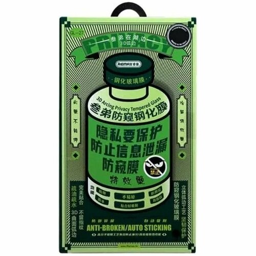 Закаленное защитное стекло антишпион для iPhone 12 Pro Max/Айфон 12 Про Макс, Remax GL-27, 0.33, черная рамка