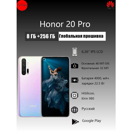 HUAWEI Смартфон Honor 20 pro 8/256 ГБ, белое
