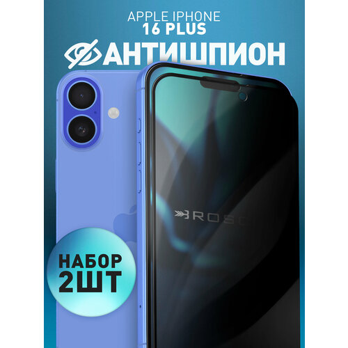 Набор защитных стекол антишпион на Apple iPhone 16 Plus (Айфон 16 Плюс), с эффектом приватности, чёрные рамки, 2 шт