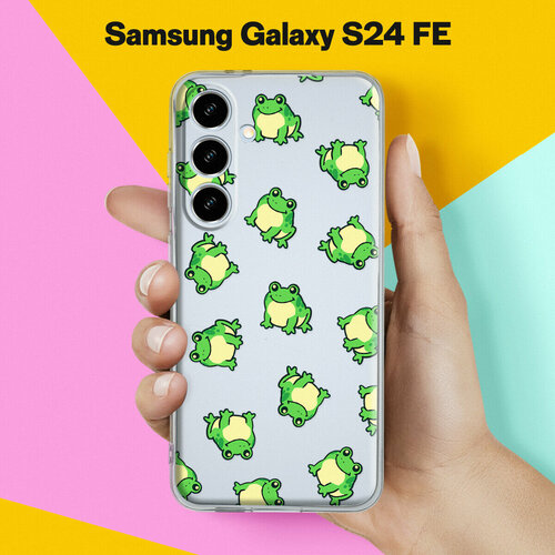 Силиконовый чехол на Samsung Galaxy S24 FE с принтом "Узор из лягушек" с прозрачными бортиками