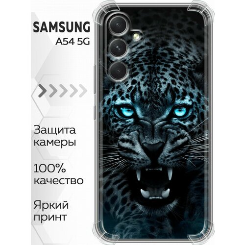 Дизайнерский силиконовый с усиленными углами чехол для Гэлакси А54 5Ж / Samsung Galaxy A54 5G Темный леопард