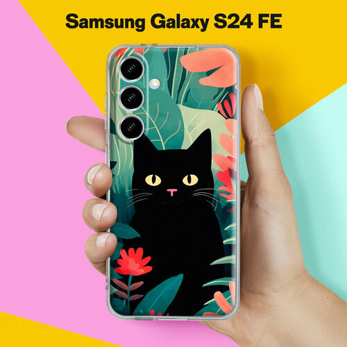 Силиконовый чехол на Samsung Galaxy S24 FE с принтом "Черный Кот" с прозрачными бортиками