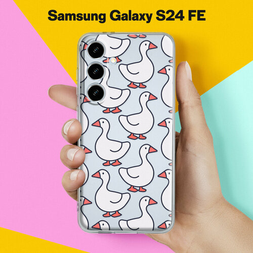 Силиконовый чехол на Samsung Galaxy S24 FE с принтом "Узор из гусей" с прозрачными бортиками