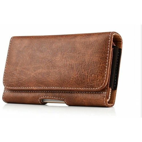 Кожаный чехол кобура на пояс для смартфонов до 5,5" с разъемом для карточек (Brown)