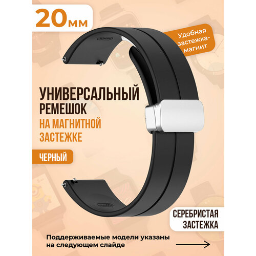 Универсальный силиконовый ремешок с магнитом 20 мм, серебристая застежка