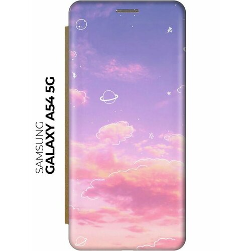 Чехол-книжка Розовое небо и космос на Samsung Galaxy A54 5G / Самсунг А54 золотой