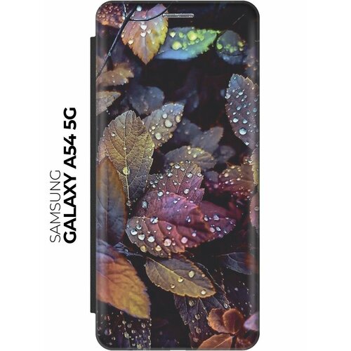 Чехол-книжка Листья в каплях на Samsung Galaxy A54 5G / Самсунг А54 черный