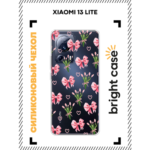 Чехол на Xiaomi 13 Lite / Сяоми 13 Лайт с принтом Бантики и тюльпаны, прозрачный