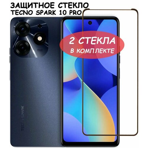 Защитное стекло "Полное покрытие" для Tecno Spark 10 Pro / Техно Спарк 10 про Черный - 2 стекла в комплекте