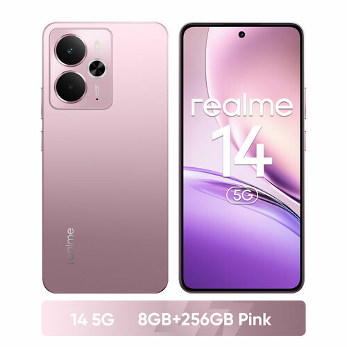 Смартфон realme 14 5G 8/256 ГБ EAC NFC Процессор Snapdragon® 6 Gen 4 Зарядка 45 Вт 6000 мАч, Розовый