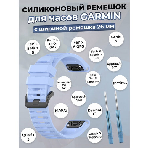 Силиконовый ремешок для Garmin Fenix / Quaitx / Descent / Enduro, 26 мм, светло-голубой