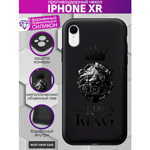Чехол на iPhone XR с Черным металлическим львом Live like a king
