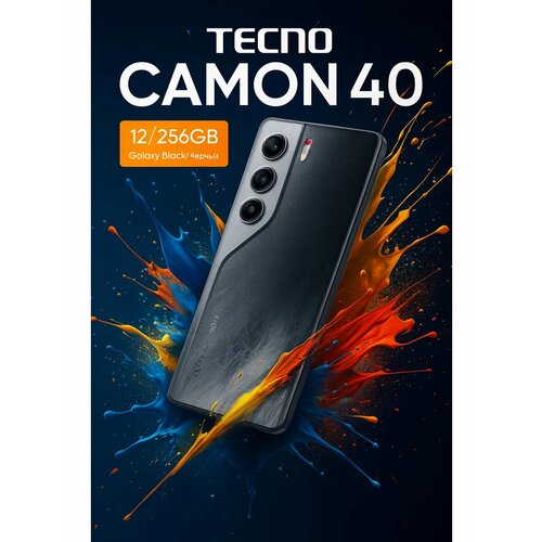 Смартфон TECNO Camon 40 12/256Gb GALAXY BLACK, аккумулятор 5200 мАч, 8-ми ядерный процессор