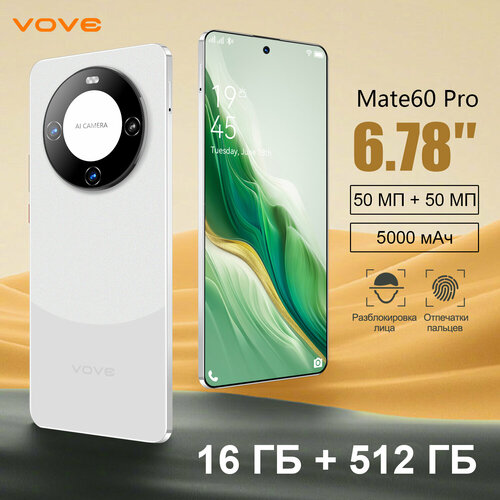 5G телефоны смартфоны Mate60 Pro 16+512ГБ, Андроид 14,8-ядерный процессор, Белый