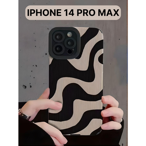 Защитный чехол на айфон 14 про макс / iphone 14 Pro Max силиконовый противоударный с защитой камеры, бежевый/черный