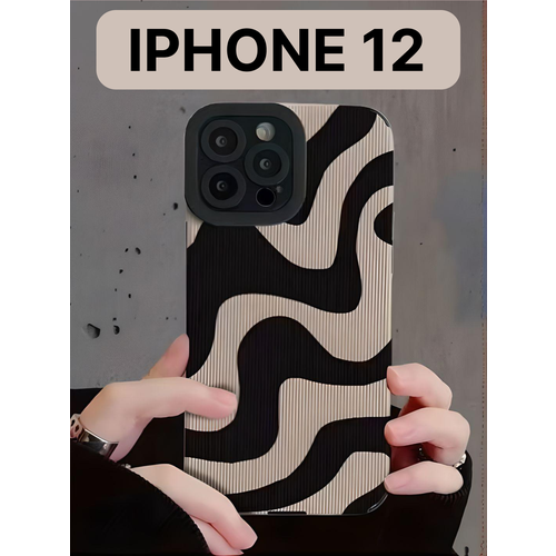 Защитный чехол на айфон 12 / iphone 12 силиконовый противоударный с защитой камеры, бежевый/черный