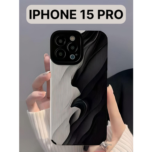 Защитный чехол на айфон 15 про/ iphone 15 Pro силиконовый противоударный с защитой камеры, черный/белый
