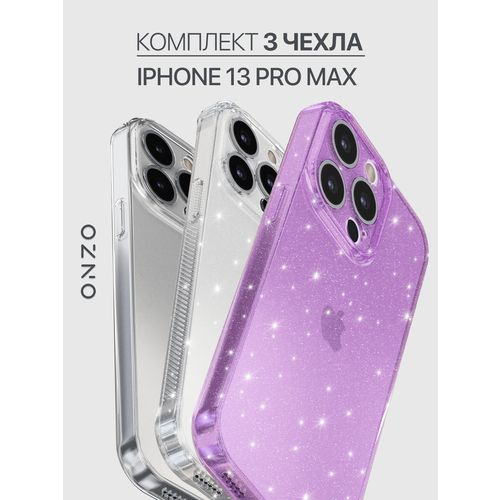 Комплект чехлов на iPhone 13 Pro Max / Бампер для Айфон 13 Про Макс сиреневый, прозрачный, с блестками