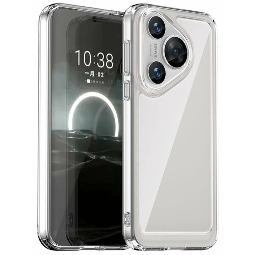Накладка пластиковая для HUAWEI Pura 70 с силиконовой окантовкой прозрачная