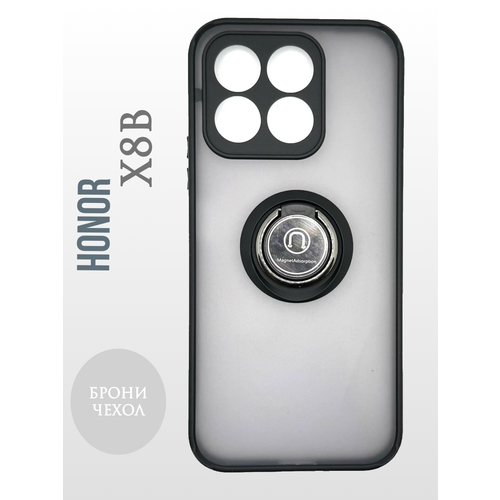 Чехол Honor X8b противоударный (Брони чехол) с кольцом-подставкой и металлической пластиной