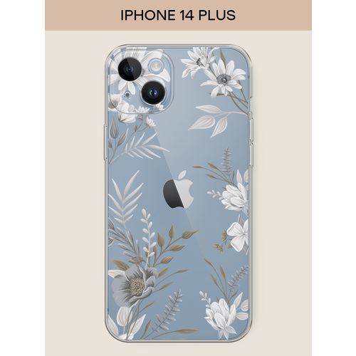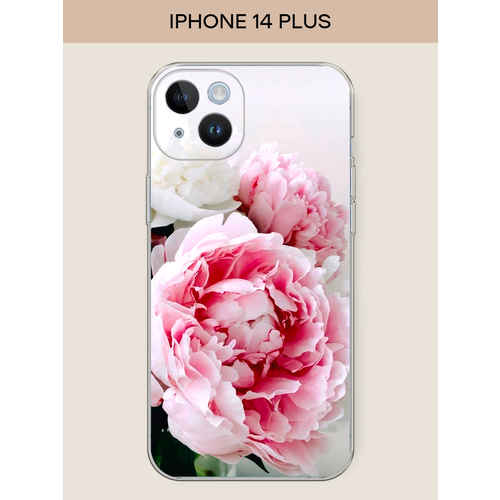 Чехол на Apple iPhone 14 Plus / Айфон 14 Плюс с принтом Розовые и белые пионы