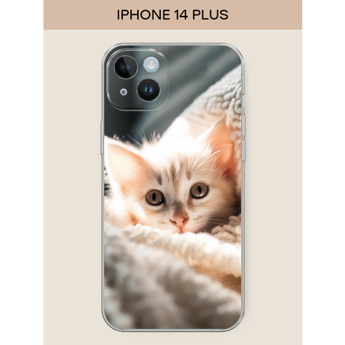 Чехол на Apple iPhone 14 Plus / Айфон 14 Плюс с принтом Белый шкодливый котенок